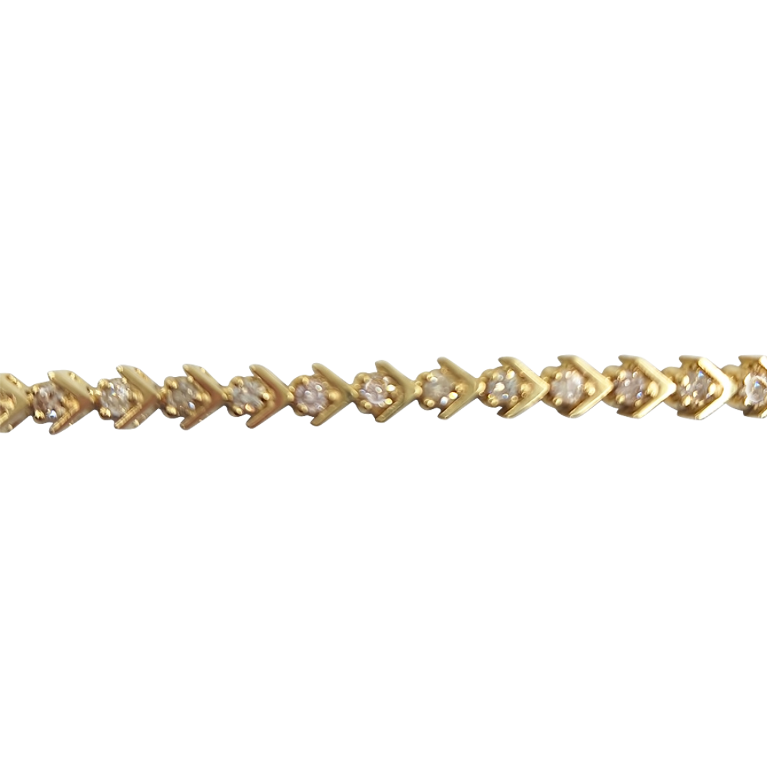 Pre-loved 14ct yellow gold bracelet set with approximately 2.00ct of sparkling diamonds. Designed with a continuous row of beautifully matched stones in a unique angular setting, this piece catches the light from every angle for maximum brilliance.