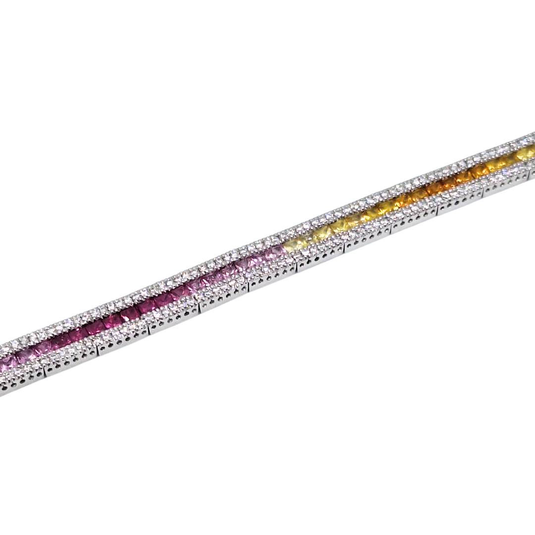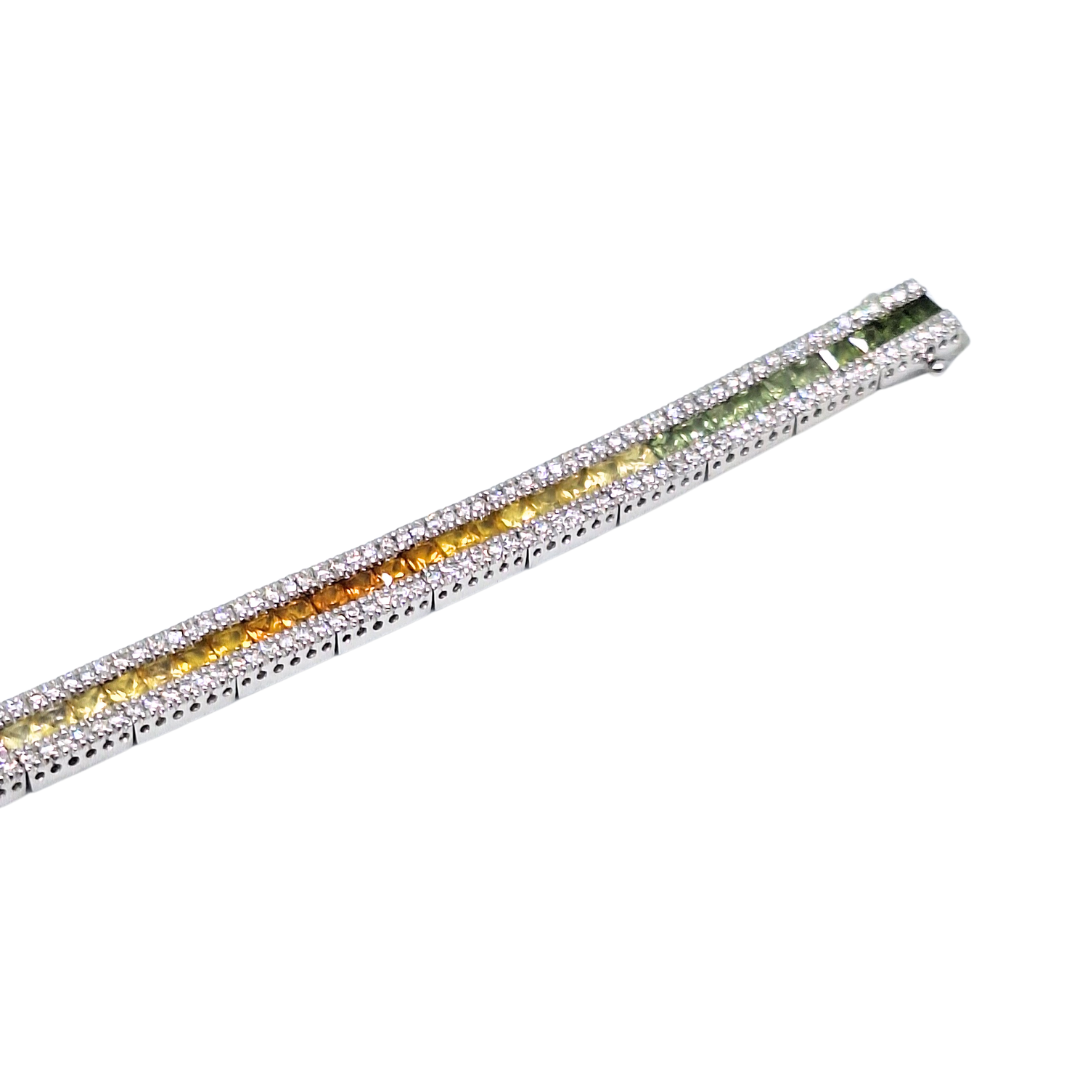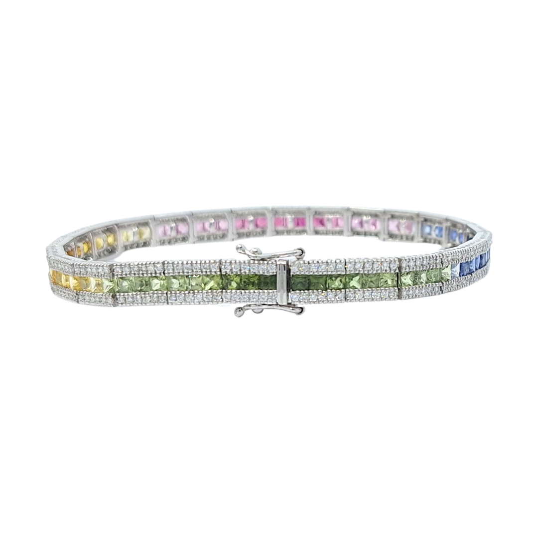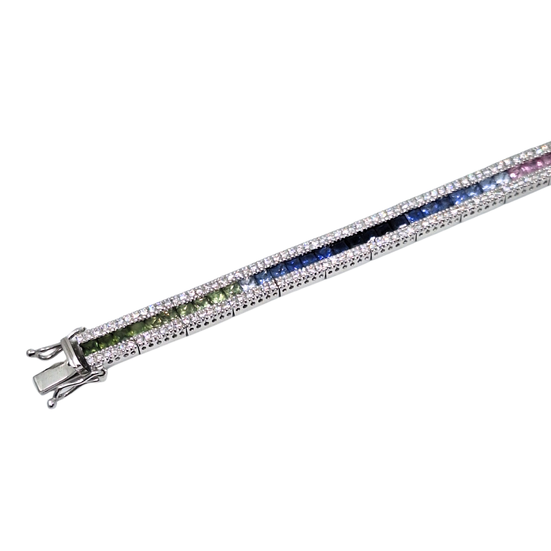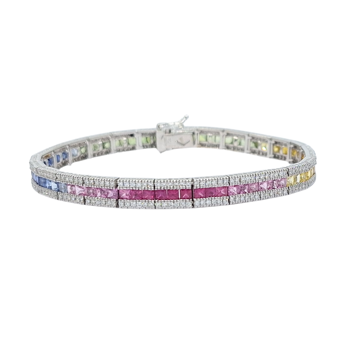18ct White Gold Rainbow Sapphire & Diamond Bracelet 7.5"
