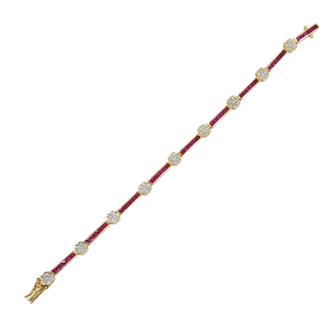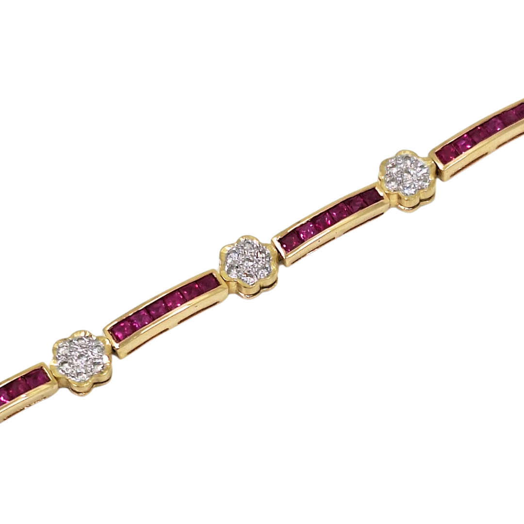 18ct Yellow Gold Ruby & Diamond Bracelet 7.5