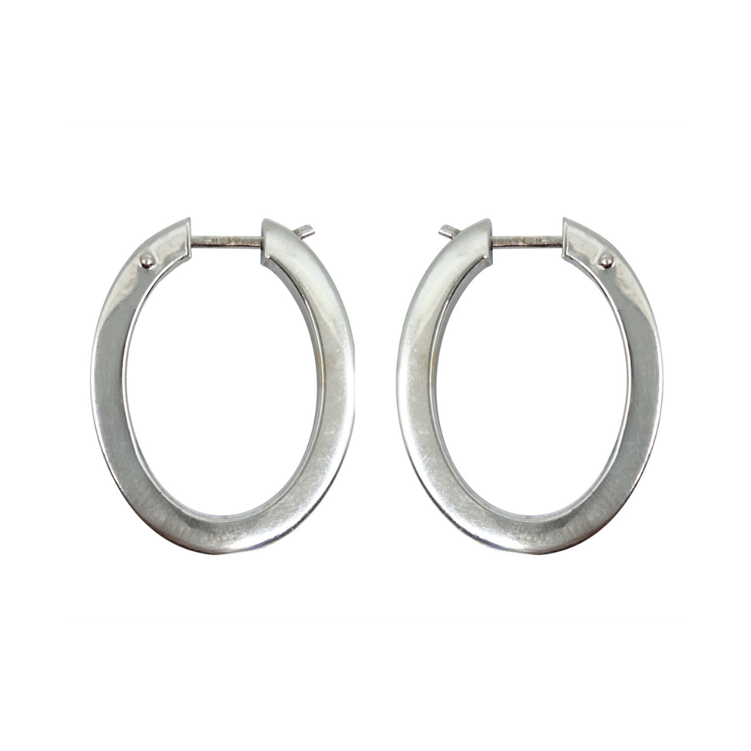 The smooth, polished finish of these hoops captures light beautifully, creating a stunning, subtle shine that enhances their sophisticated appeal. The oval shape provides a contemporary twist on the traditional hoop design, making them a versatile accessory suitable for both everyday wear and special occasions.