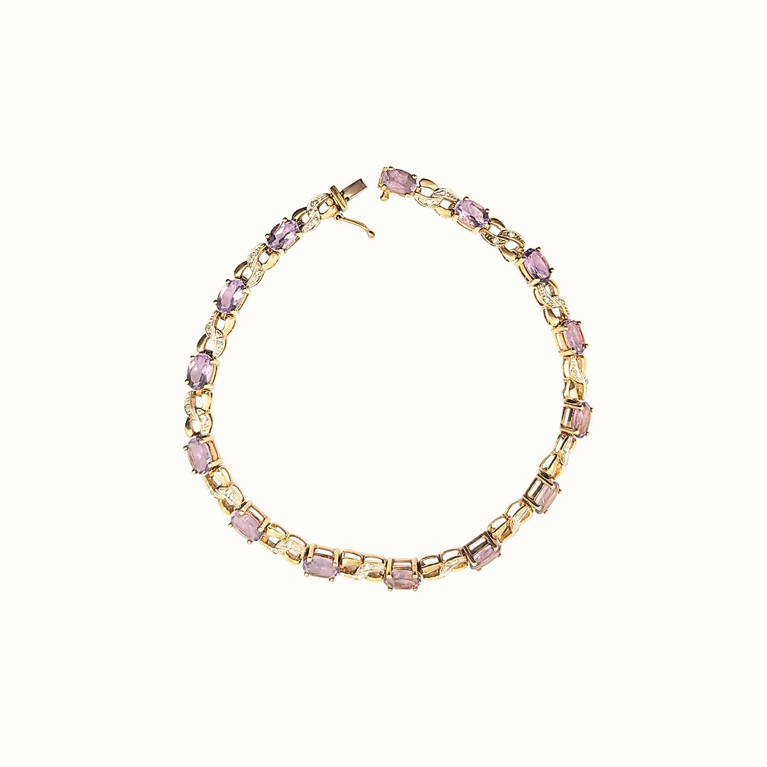 9ct Yellow Gold Amethyst Bracelet 7.5"