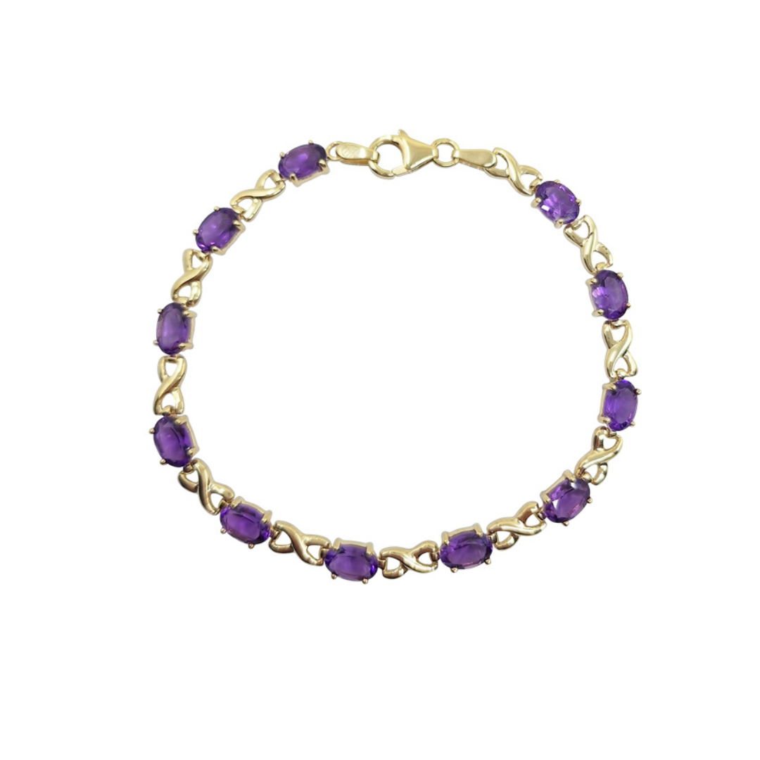9ct Yellow Gold Amethyst Kiss Link Bracelet 7.5"