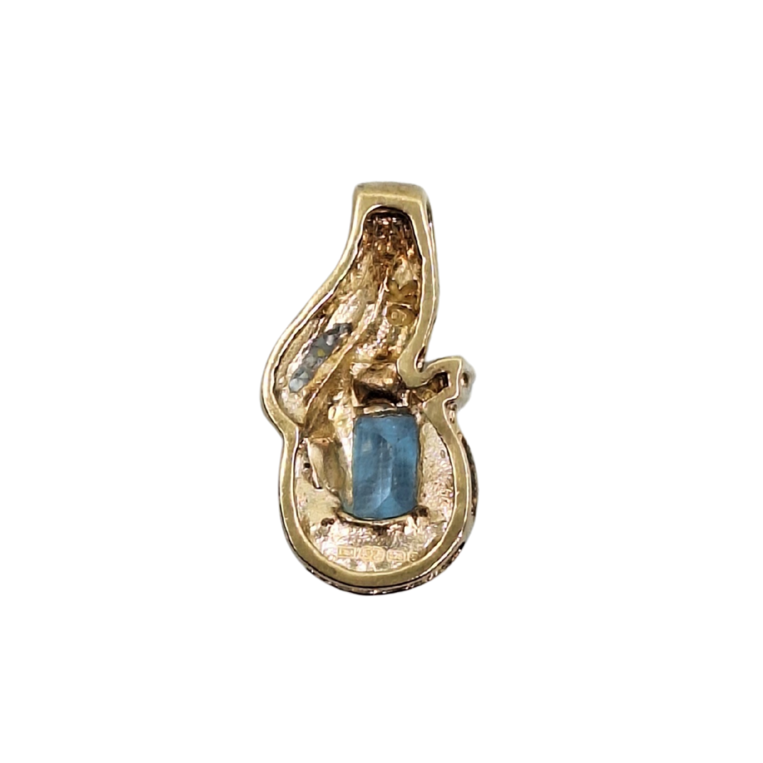 9ct Yellow Gold Blue Topaz & Diamond Pendant