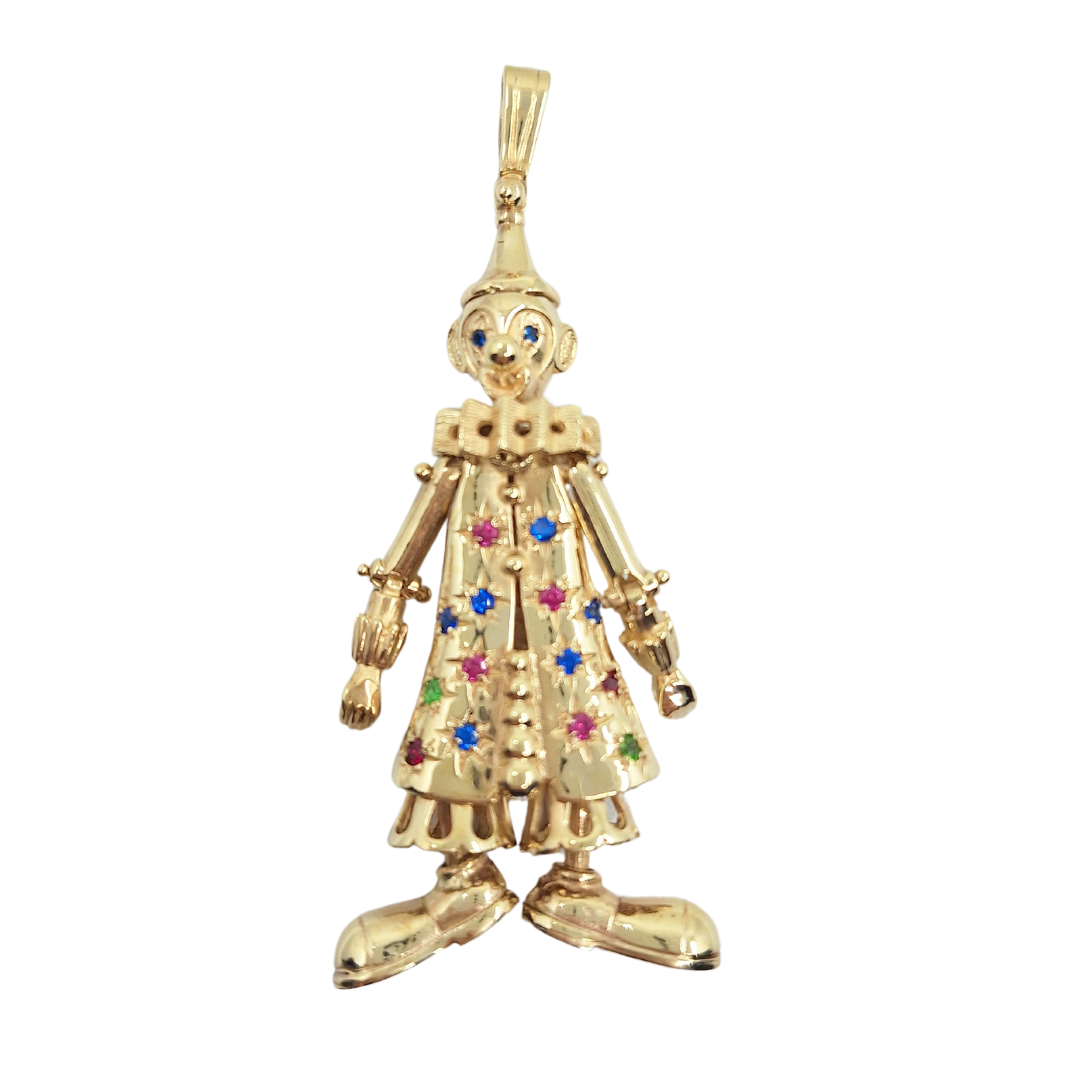 What makes this pendant truly special is its unique feature - the moving arms and legs. With a gentle touch, the clown's arms and legs can be delicately moved, adding an interactive element to this delightful piece.