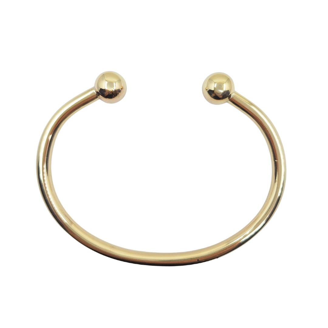 Pre-loved 9ct yellow gold torque bangle is a timeless accessory that exudes elegance. Featuring a polished finish and an open-ended design for easy wear, this versatile piece is perfect for adding a touch of understated luxury to any outfit. Ideal for both everyday wear and special occasions, this bangle makes a thoughtful gift or a chic addition to your jewellery collection.