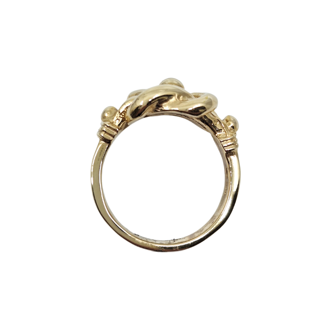 Pre-Loved 9ct yellow gold gents knot ring, a distinguished piece of jewellery that seamlessly combines classic design with intricate craftsmanship. This exquisite piece combines the traditional allure of a knot motif, symbolizing eternal strength and commitment, with the unmatched lustre of premium yellow gold.