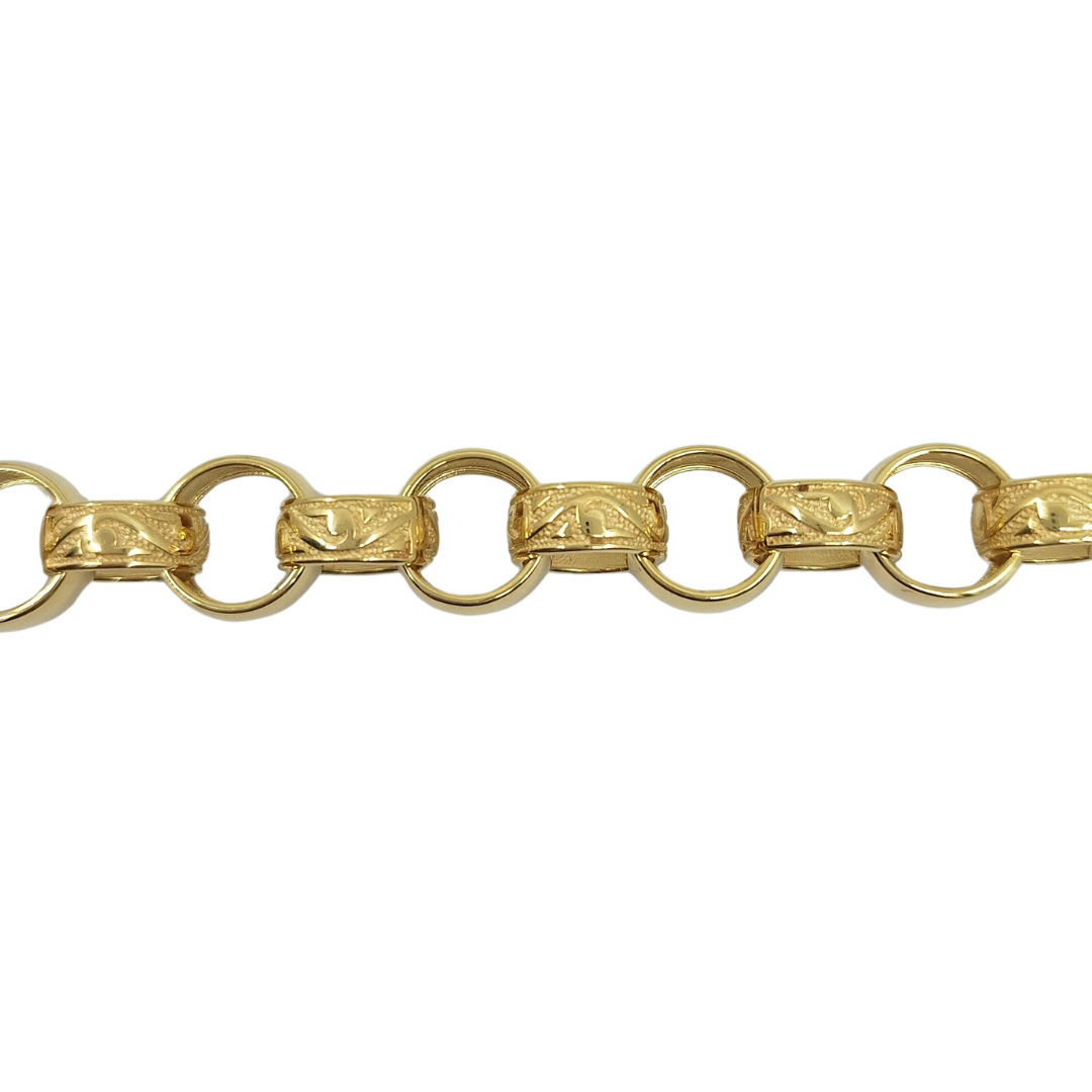 9ct Yellow Gold Pattern & Plain Belcher Bracelet 9"