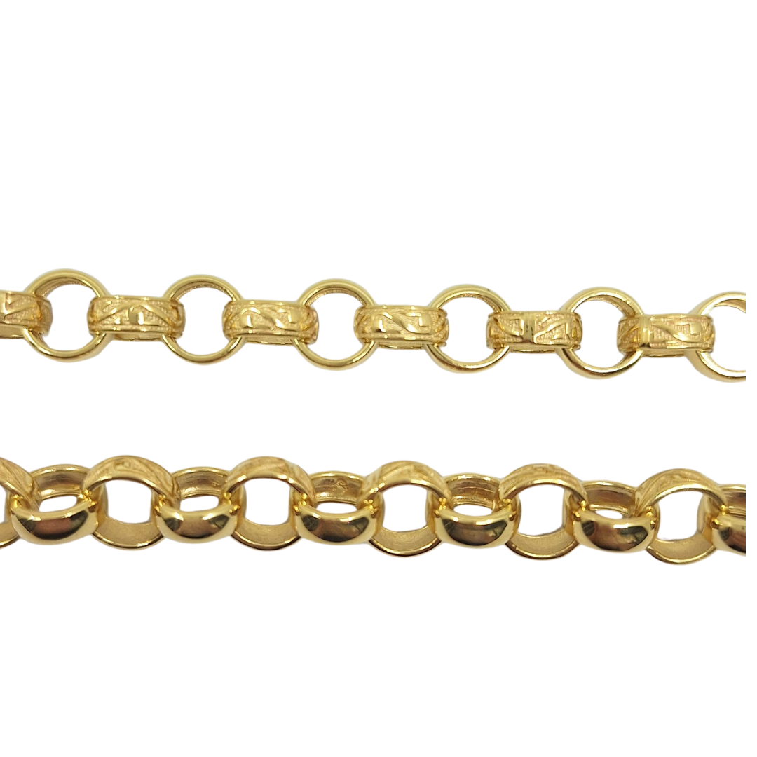 9ct Yellow Gold Pattern & Plain Belcher Chain 25"