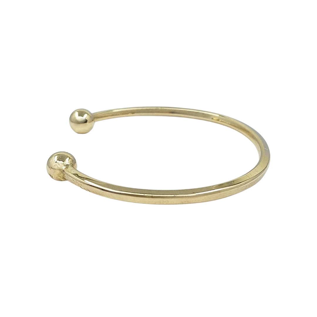 Pre-loved 9ct yellow gold torque bangle, designed with a classic open-ended style and a beautifully polished finish. Elegant yet easy to wear, it’s perfect for adding a touch of luxury to everyday outfits or dressing up for special occasions. Wear it alone for a clean statement look or stack it with other bangles for a layered finish.