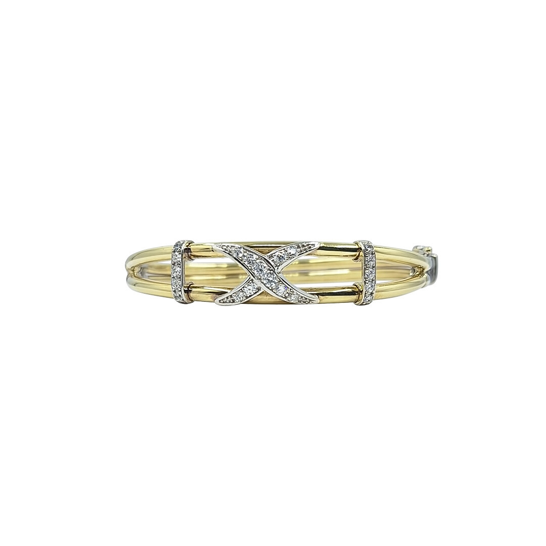 9ct Yellow & White Gold CZ Bangle