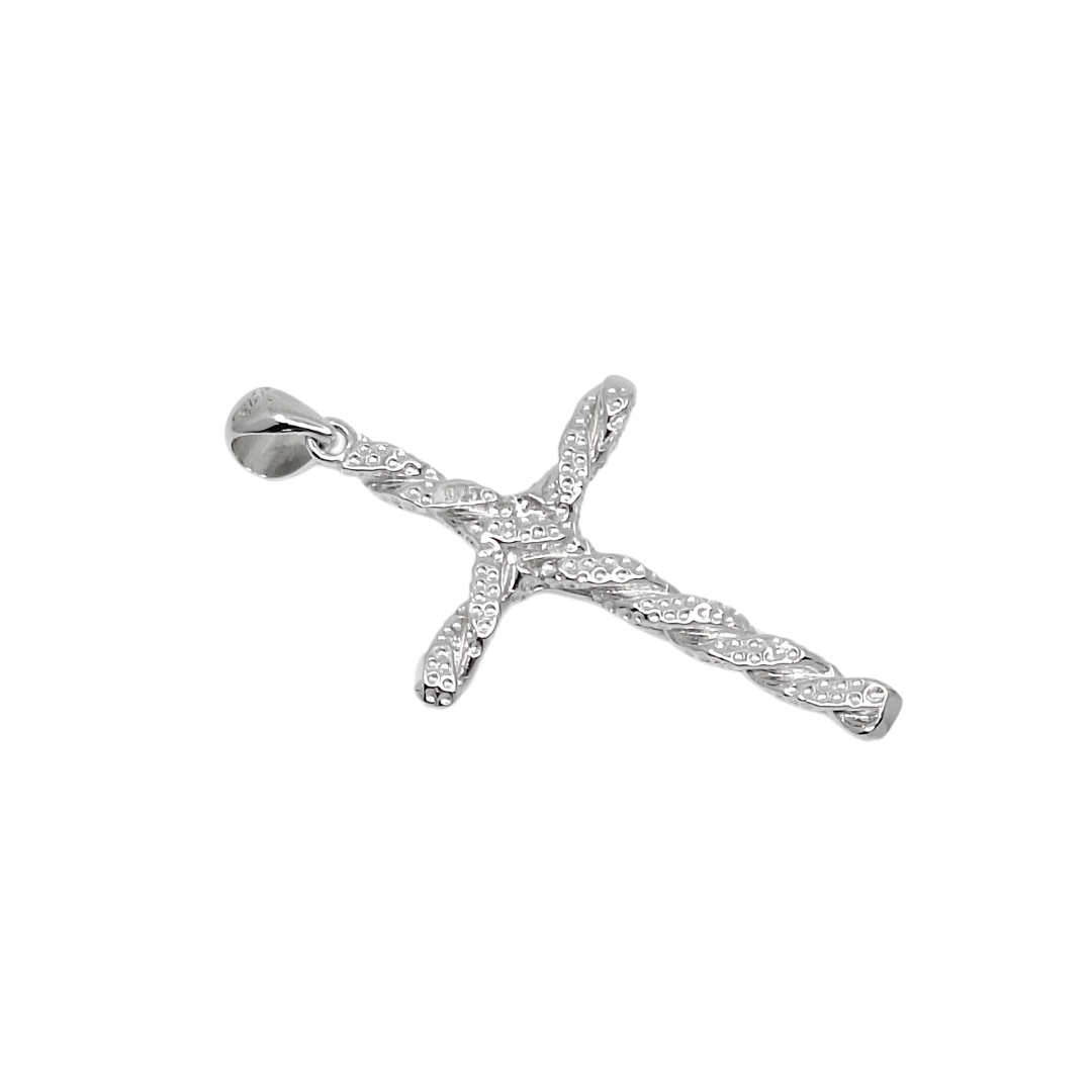This sterling silver crucifix cross features a unique twist design effect, adding a modern touch to a traditional symbol. Crafted with fine detailing and a polished finish, the crucifix offers both meaning and style. A distinctive piece ideal for everyday wear or as a thoughtful gift. Chain not included.