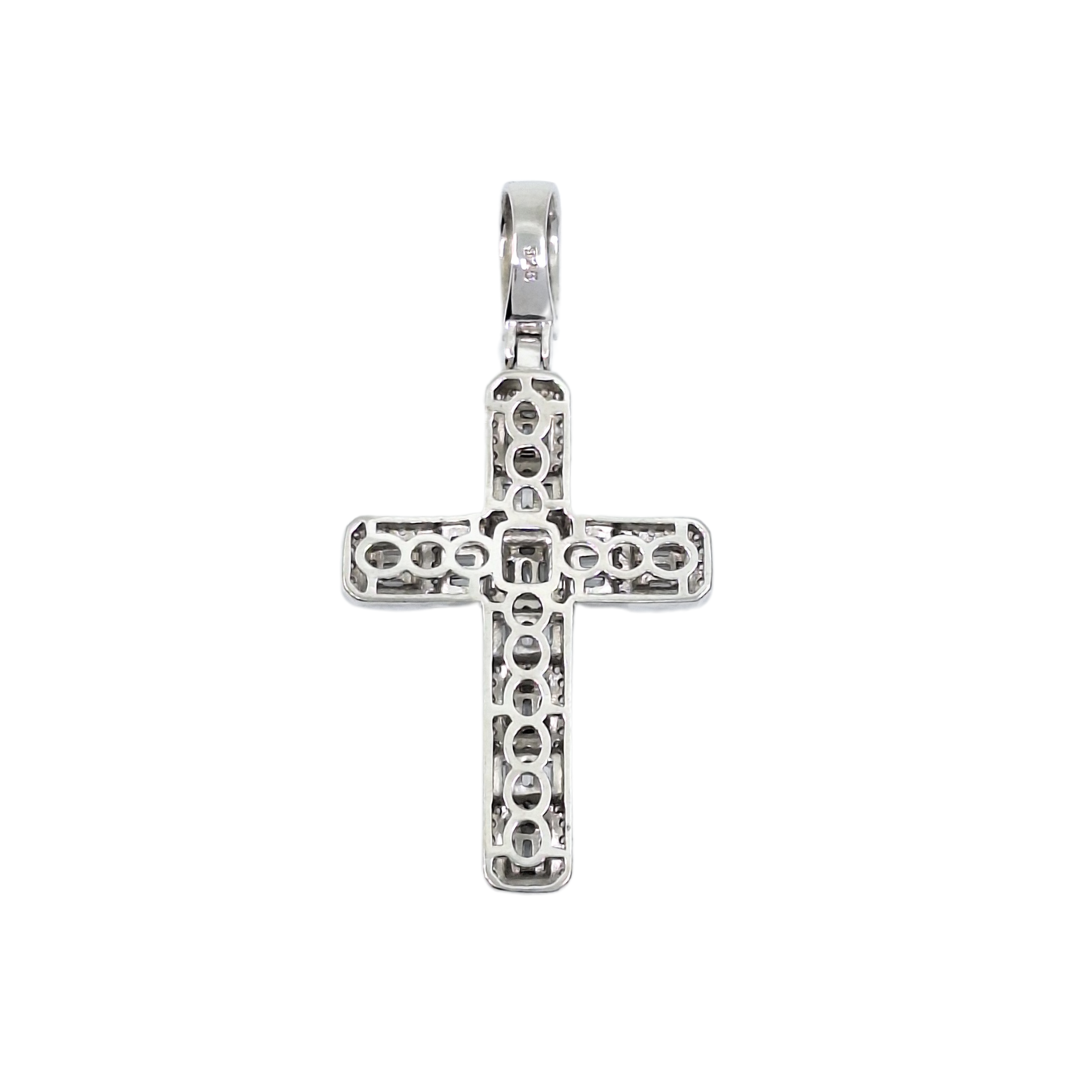 This sterling silver cross pendant combines classic design with a touch of brilliance. Adorned with sparkling cubic zirconia, it catches the light while maintaining a timeless and meaningful look. Crafted in silver with a polished finish, this pendant is a versatile piece, perfect for everyday wear or as a thoughtful gift.
