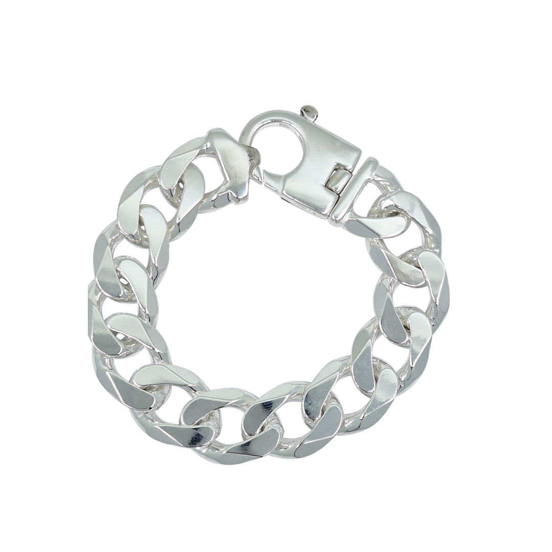 A classic silver curb bracelet, crafted with flat interlocking links for a strong and timeless design. Finished with a bright polished shine, it offers a clean, versatile look that’s perfect for everyday wear. Durable and easy to style, this bracelet can be worn alone for a simple statement or layered with other pieces for a modern finish.