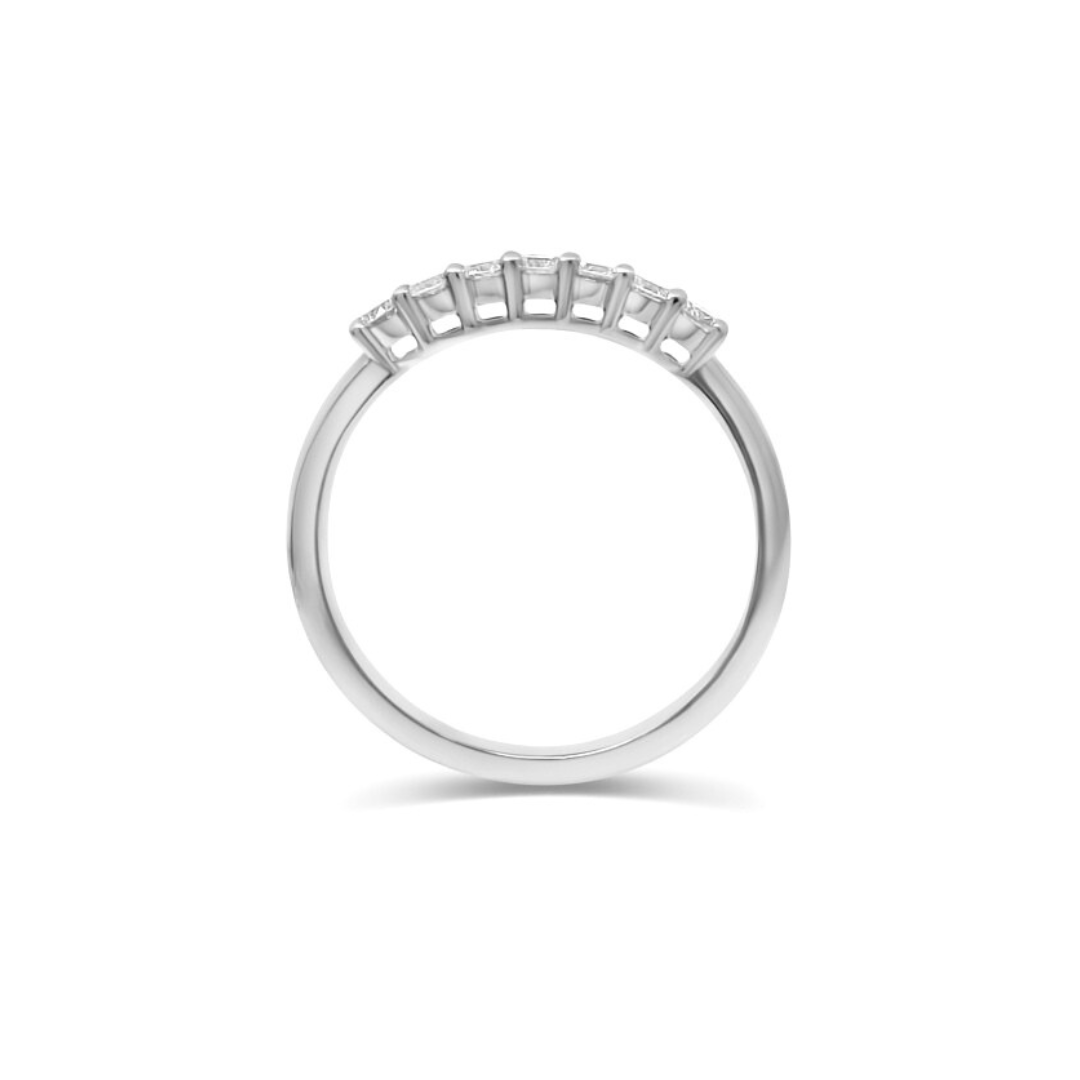 This 9ct white gold eternity ring showcases seven lab-grown diamonds, each securely held in a classic claw setting to maximise brilliance and light reflection. The elegant row of sparkling stones symbolises enduring love and commitment, while the polished white gold band adds a sleek, timeless touch. A perfect choice for marking a special occasion or adding lasting sparkle to your jewellery collection.