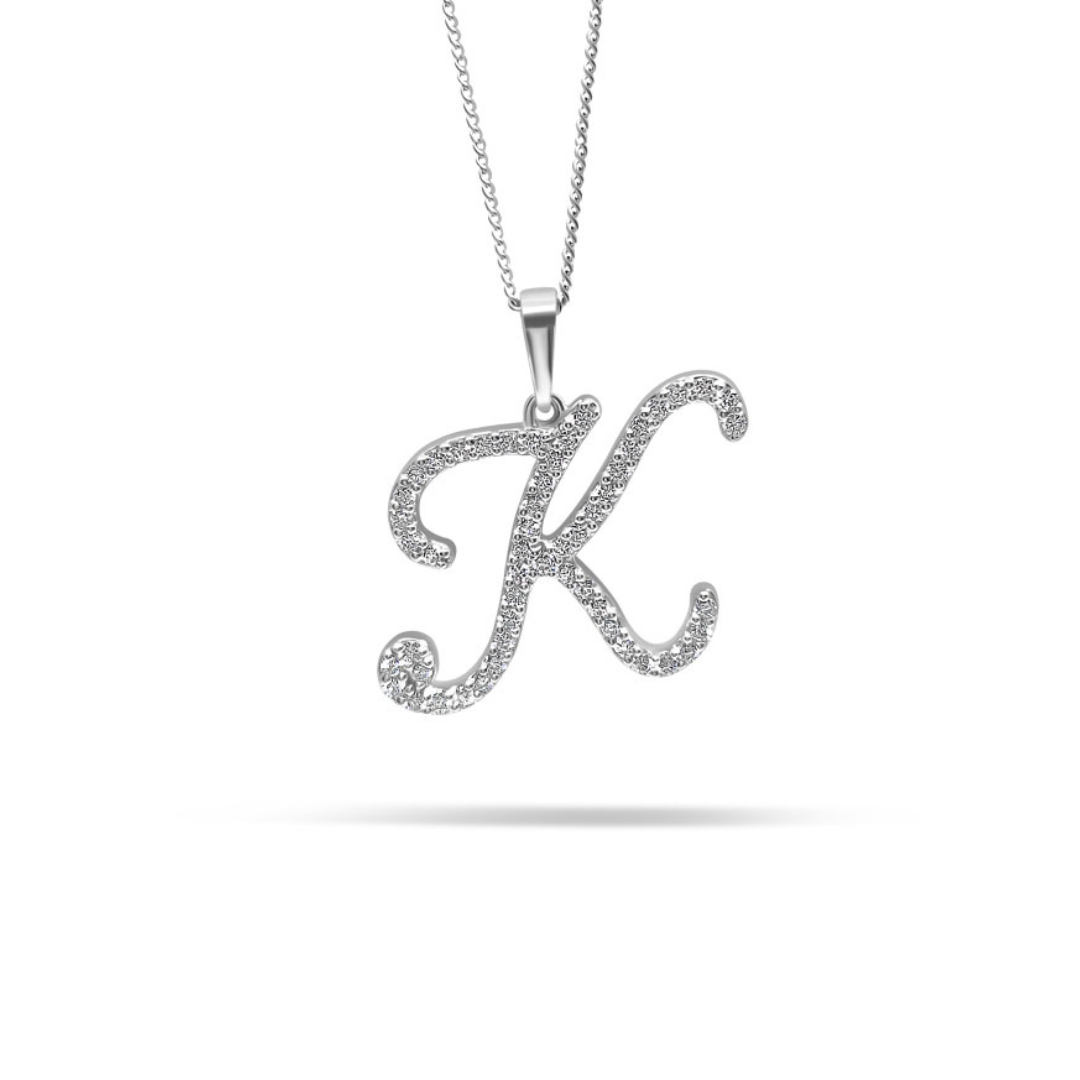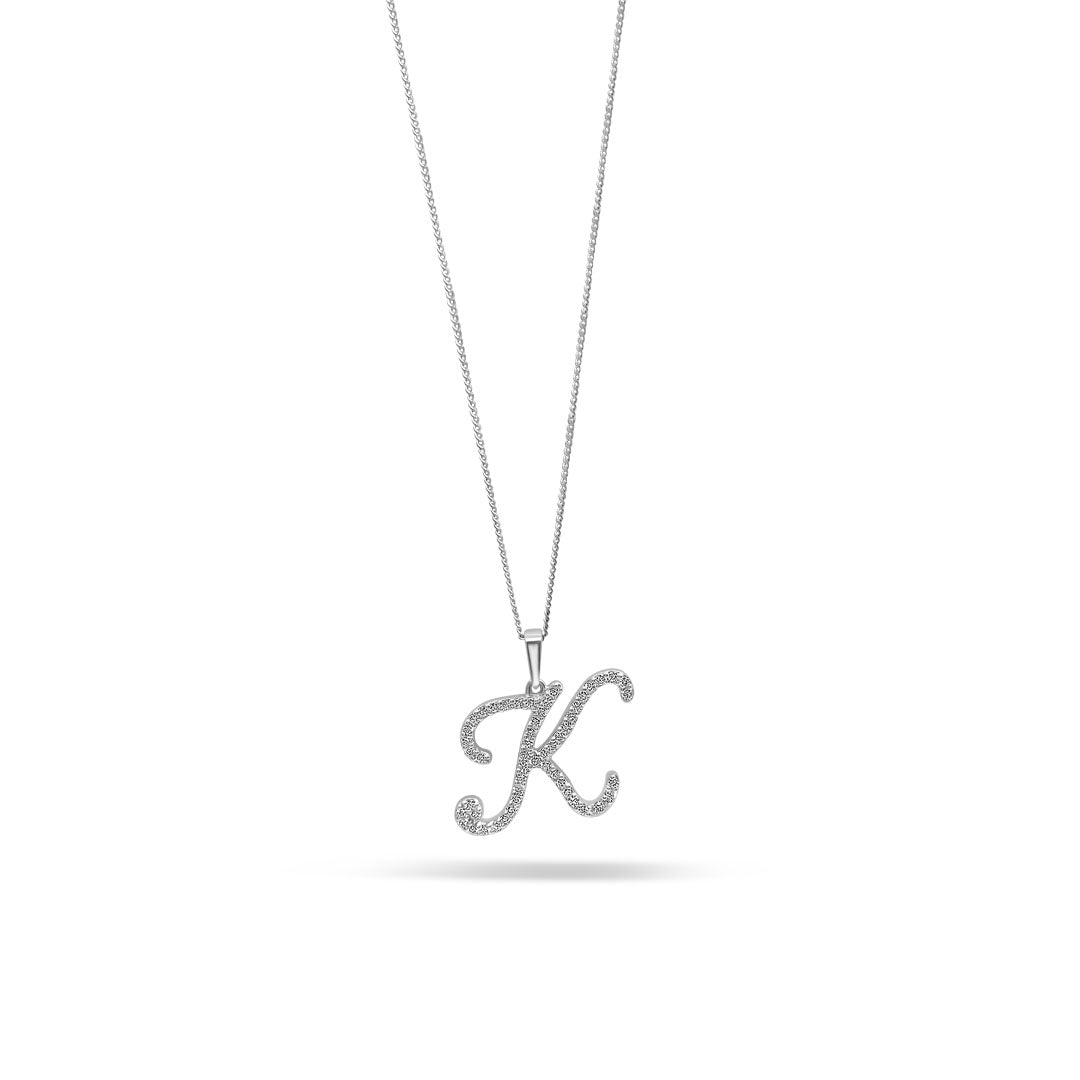White Gold & Ethical Diamond Initial K Pendant