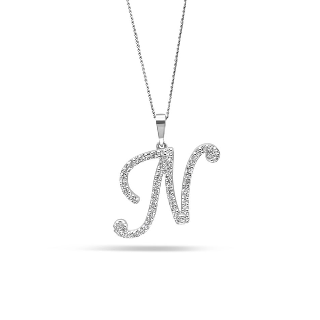 This exquisite initial pendant offers a perfect blend of beauty and ethics. Expertly crafted in 9ct white gold with brilliant cut lab-grown diamonds, showcasing their exceptional sparkle and fire. Diamond colour D, clarity VS2.