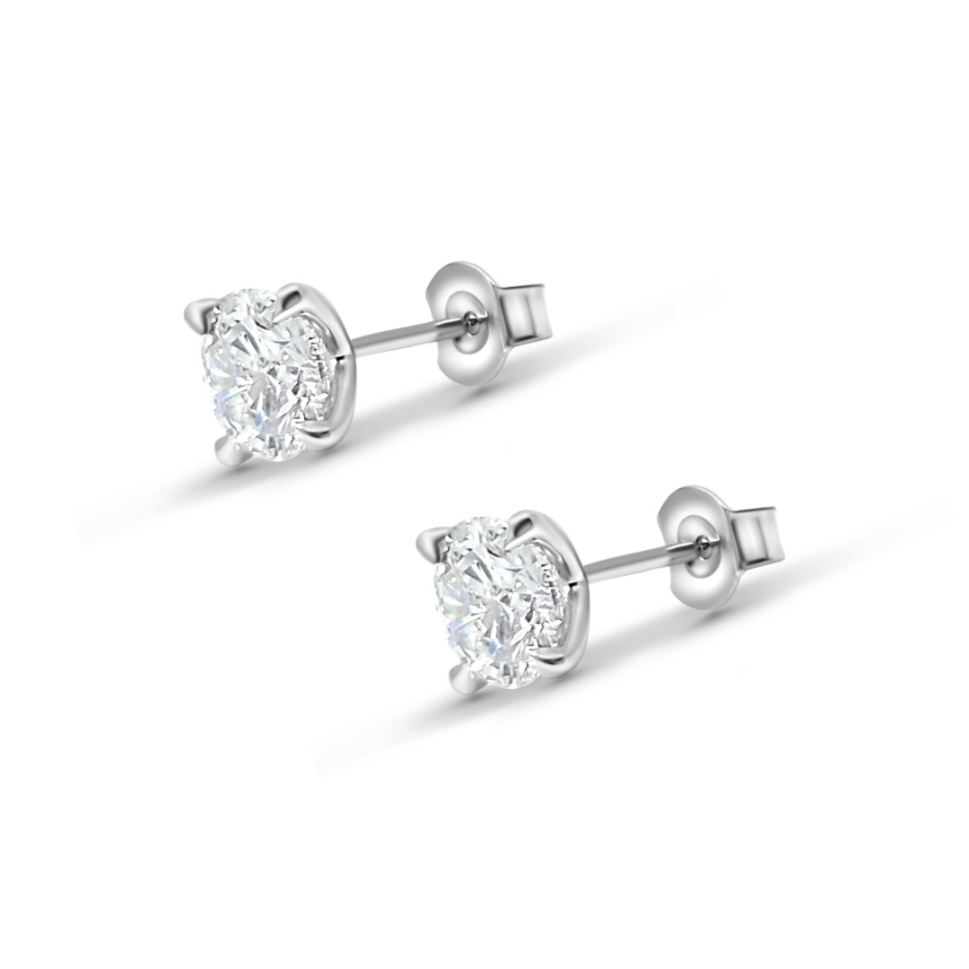 9ct white gold lab-grown diamond solitaire earrings. Featuring a total carat weight of 2.40ct, each earring showcases a brilliant round diamond securely set in a classic four-claw setting, allowing the stones to sparkle from every angle. Crafted in elegant white gold, these timeless studs offer a sustainable and ethical choice without compromising on beauty or brilliance. Perfect for both everyday wear and special occasions, they are secured with comfortable butterfly backs. A sophisticated gift or an exquisite addition to your own collection.