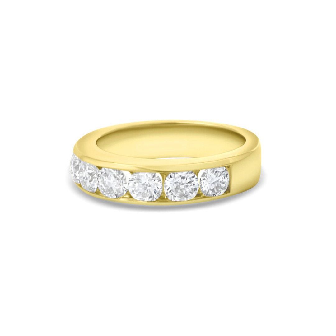 This 9ct yellow gold eternity ring features seven lab-grown diamonds, channel set in a sleek, modern band. The continuous row of sparkling stones symbolises everlasting love, while the clean lines of the channel setting offer a secure and elegant finish. Crafted in polished yellow gold, this ring combines timeless design with sustainable brilliance—perfect as a meaningful gift or a refined addition to any jewellery collection.
